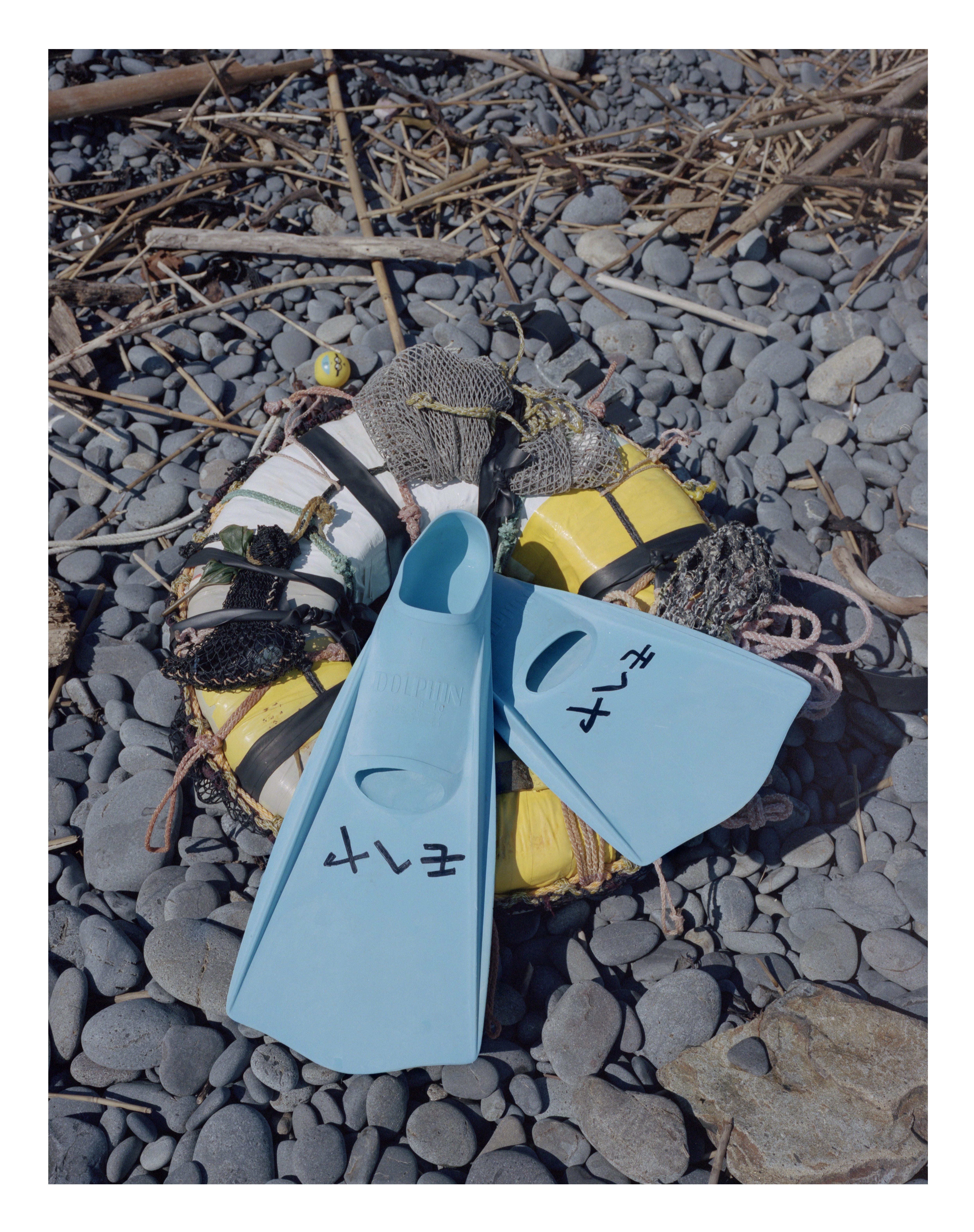 A pochi chilometri dal paese, Rikako, la sua sensei e altre tre ama hanno la loro zona privata di pesca, nascosta dalle strade principali. Dal centro del paese, per dieci minuti, si percorrono in auto dei sentieri tortuosi in mezzo a una folta vegetazione; abbandonata l’auto e raccolti gli attrezzi del mestiere, si cammina per altri cinque minuti attraverso quella che sembra una foresta tropicale, fino a raggiungere una spiaggia di ciottoli non troppo profonda. Dietro ad alcune macchie di vegetazione, risiede l’ama-goya, una capanna costruita a mano con materiali di recupero, il luogo in cui le ama si riuniscono e si preparano prima e dopo le battute di pesca. Lo stile delle capanne può variare a seconda del gruppo o della comunità cui appartengono, ma alcune caratteristiche sono comuni a tutte: un spazio riservato al fuoco è sempre presente al centro della stanza; tra il tetto e le pareti, tutto intorno alla struttura, corre una fessura utile a far fuoriuscire il fumo dalla capanna. Attorno al fuoco, le ama si riposano e si riscaldano prima di ogni sessione, insieme discutono, scherzano e condividono consigli e segreti di pesca. Prima di ogni battuta, consumano un pasto per avere energie a sufficienza a sostenere le faticose sessioni di immersione; dopodiché rivolgono preghiere rituali a un piccolo altare che, tra mute appese, yukata e vecchi ricordi, si erge su una mensola, mentre di fronte bruciano degli incensi, circondati da mucchietti di foglie e piccoli oggetti di legno. Le pescatrici invocano protezione contro demoni e spiriti marini. Infatti, si racconta che lo spirito delle ama defunte in mare continui a vagare tra i fondali afferrando e impedendo alle ama che vi si imbattono di ritornare in superficie per respirare. Per questo motivo le ama disegnano sul loro equipaggiamento due simboli di protezione, una stella a cinque punte – seiman – e una sorta di griglia – doman. Questi talismani, che ritroviamo su mute, pinne o calzini, disegnati con inchiostro viola o ricamati con del filo nero, sono parte integrante della divisa di una ama. Si dice che in ogni spazio creato dalle linee di questi simboli risiedano numerosi occhi che sorvegliano e controllano in ogni direzione, per proteggere l’ama dagli spiriti malvagi. Ogni pescatrice li ha disegnati da qualche parte, e se ne incontrate una che ne è priva allora siete al cospetto di un tomokazuki ovvero un demone.