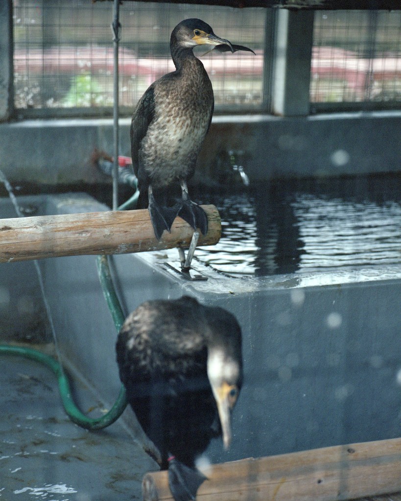 A Gifu i pescatori governano una dozzina di cormorani, e sono tutti discendenti dalle famiglie che fino alla restaurazione Meji praticavano la pesca su mandato dell’imperatore. A Uji sono solo tre i pescatori in attività, due delle quali sono donne. Indossano la divisa tradizionale composta da un cappello floscio (Kazaore boshi) e una gonna di paglia (Koshimino).