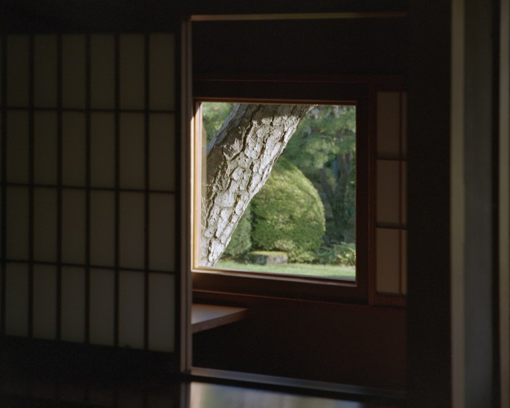 The Japanese-style rooms had walls painted in primary colors—one red, another blue, and a third in faded yellow. The bathrooms, with sunken tubs of various sizes, were inspired by the baths of Roman villas. I took a few photos, feeling slightly self-conscious and trying not to draw attention, as though I were in someone’s home and secretly photographing the private spaces of the host. I wondered what lives the people who lived here must have led. On the wall of one room, there were black-and-white photos of men of different ages. I couldn’t read the captions but recognized one of the faces. I’d seen it printed on the back of a small book I’d read just before leaving. It was Osamu Dazai. These must have been portraits of famous figures who had stayed at the villa. I thought that perhaps he’d written some of the pages of No Longer Human there, which I had just read. I left the villa smiling, heading toward the mountains. I arrived at a temple, marked by signs posted along the way, called Kinomiya. Here, an old camphor tree and the deity residing within it, for over two thousand years, are venerated.